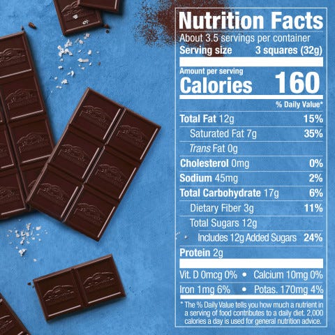 - 60% cacao dark chocolate squares provide intense and rich flavor